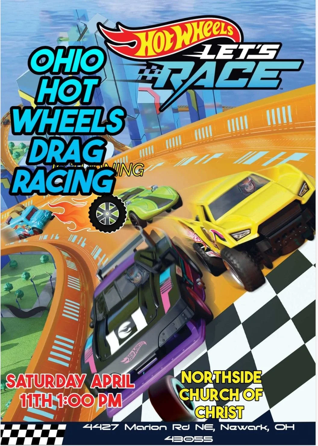 All kids and adults are welcome to attend and participate in the Hot Wheels Drag Racing event Saturday April 11th at 1:00 pm.